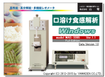 | ・食感(触感)をとらえます。 食品の世界では一般的な測定法で、かたさ・もろさ・付着性・凝集性・ガム性およびエネルギーを自動解析します。 この解析法は食品のみならずあらゆる素材の物性解析に応用できます。 ※えん下食品かたさ基準判定機能付 ※Ver.2.0の詳細につきましては 弊社までお問い合せ下さい |